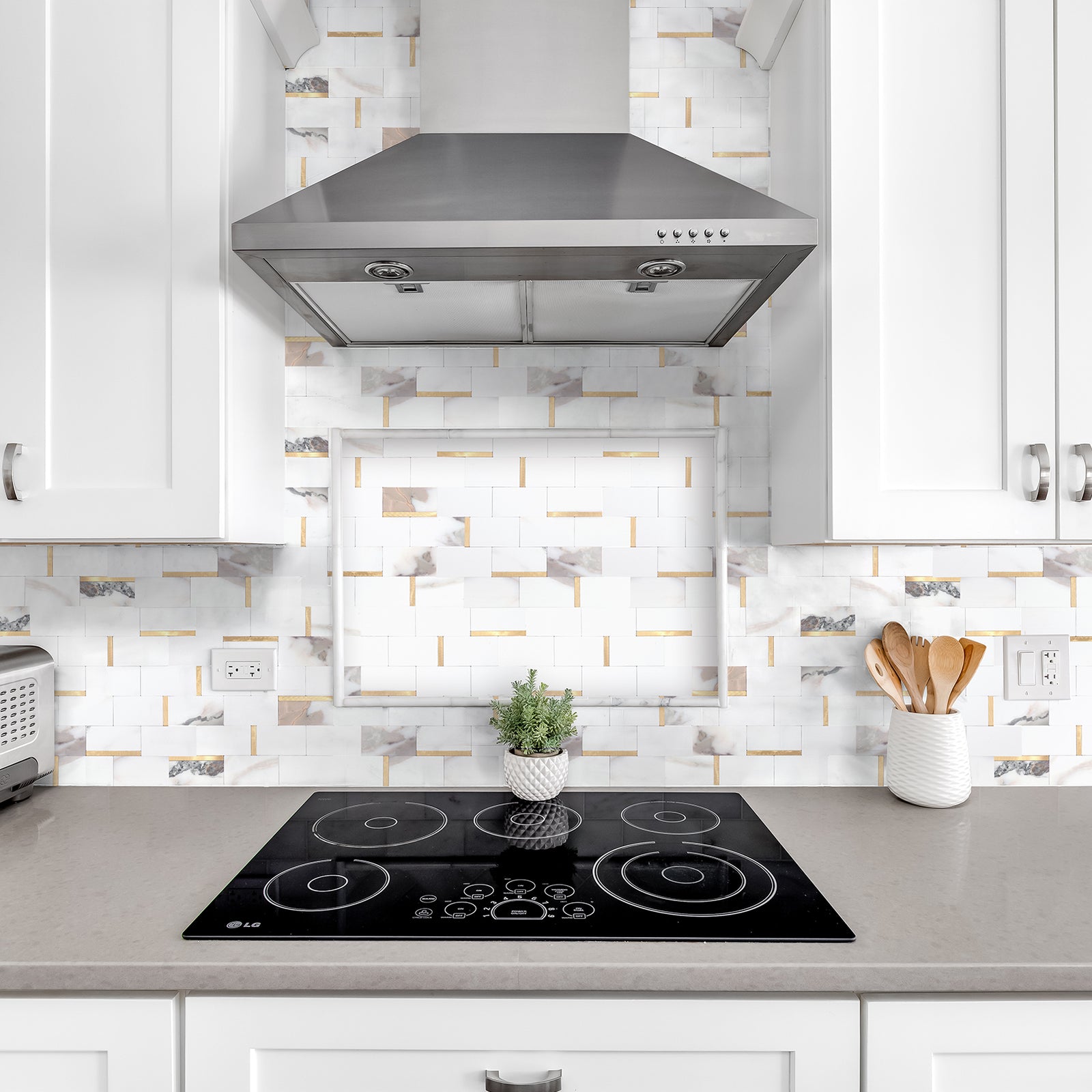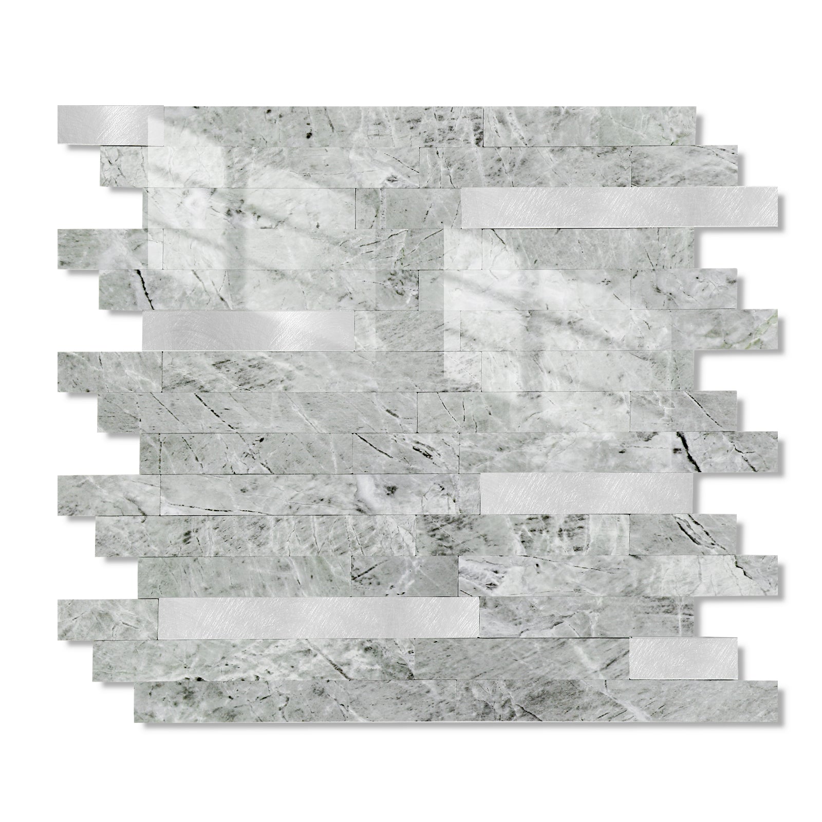 12" X 12" Marble White With Metal Peel and Stick Backsplash Linear Blend Tile