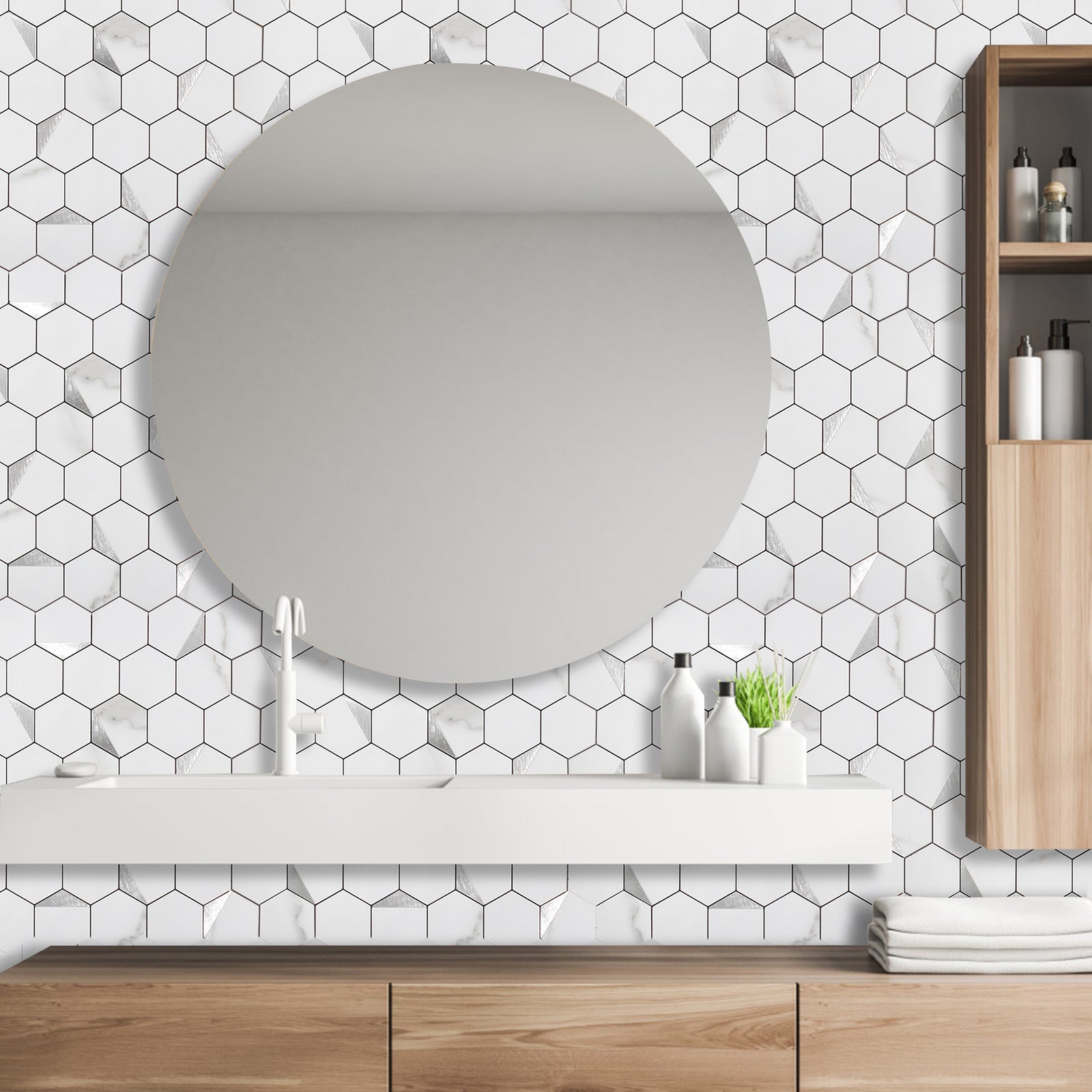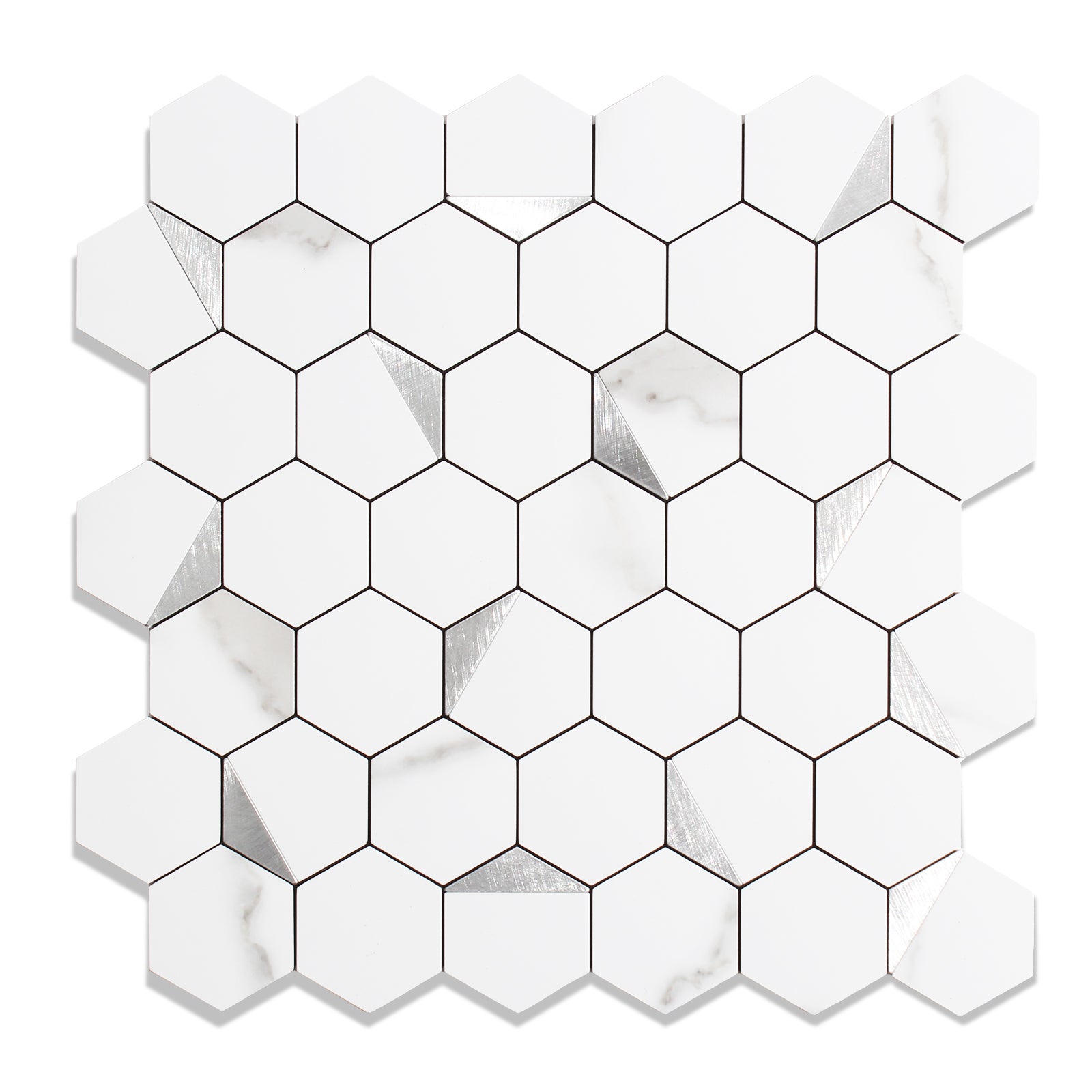 12" x 12" Hexagon Tiles Peel and Stick Backsplash Gray White Mixed Silver