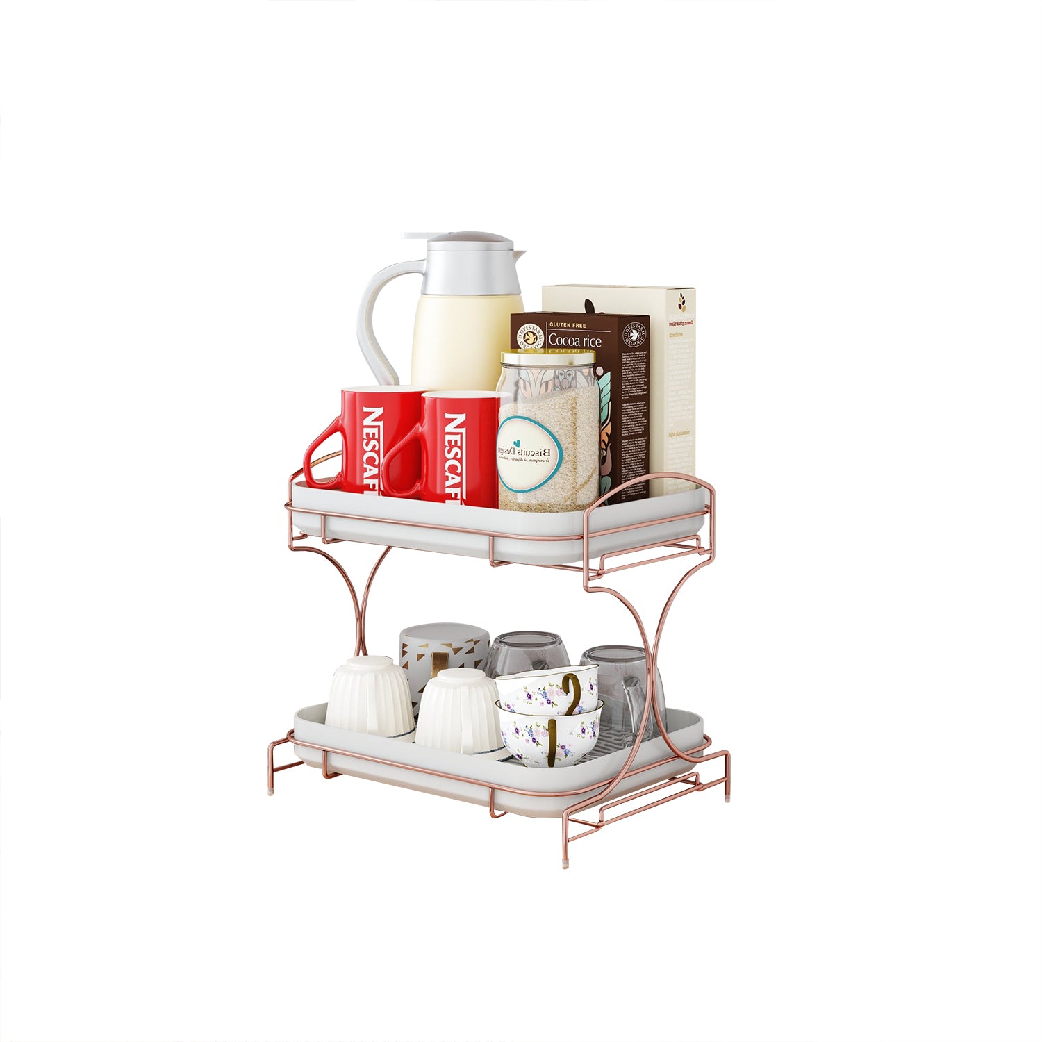 Features: The shape is simple and generous, easy to take, and add a more wonderful style to your desktop. 【Large Capacity】This cup storage rack has two layers of storage space, with a large capacity, which can better meet your daily needs. 【Stable base】Square base, metal frame, more stable placement, is your good helper for storage. 【With Drain Tray】With tray, easy to drain, clean and refreshing, the tray can also be removed and used alone. 【Function】This mug holder can easily place items upside down for quick drying.