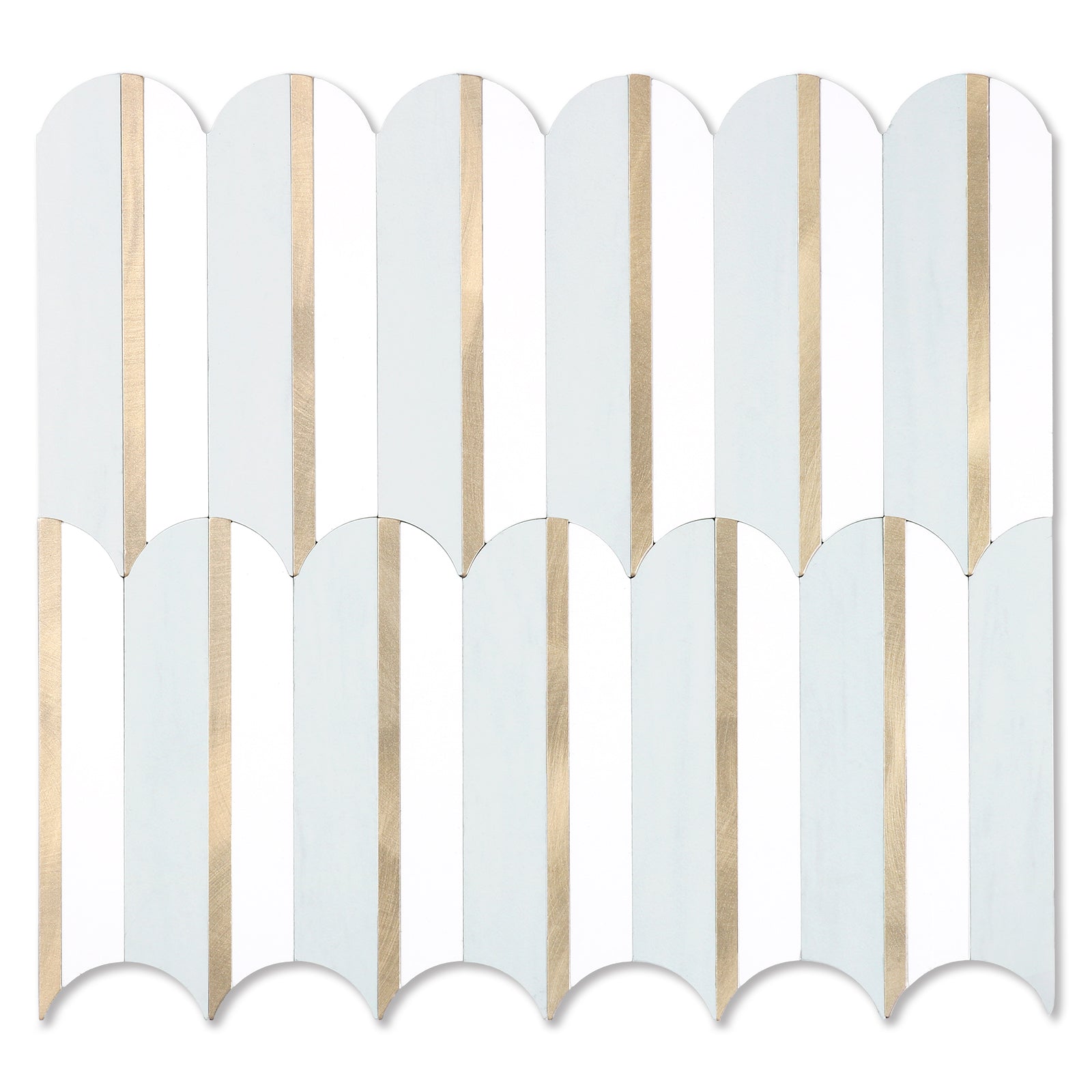 11.81" X 10.47" Glossy Dolomite & White Gold Fish Scale Peel and Stick Tiles